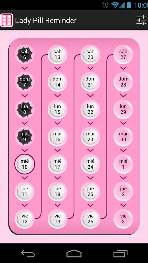Lo más padre es que puedes escojer como es el sistema de tus píldoras de 25, 26, 27,28 28 (21+7), etc. Cuando fue tu primera toma este mes.